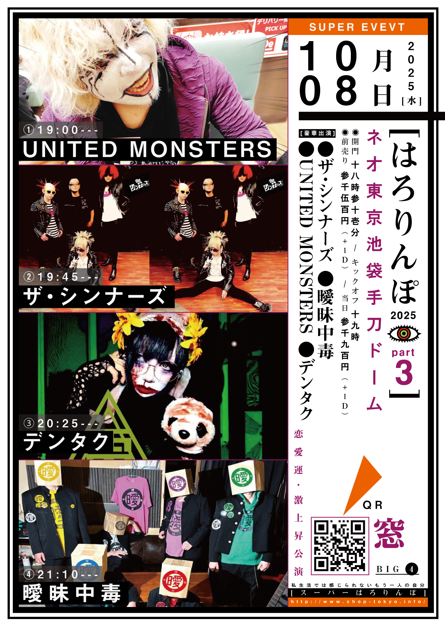 ◆前売りパー予約方法&入場ジュン:[1].TIGET(前売券予約No.1~番号順/*当日会場受付にて代金お支払い) → [2].バンド予約(取り扱いグループのみ) → [3].当日券