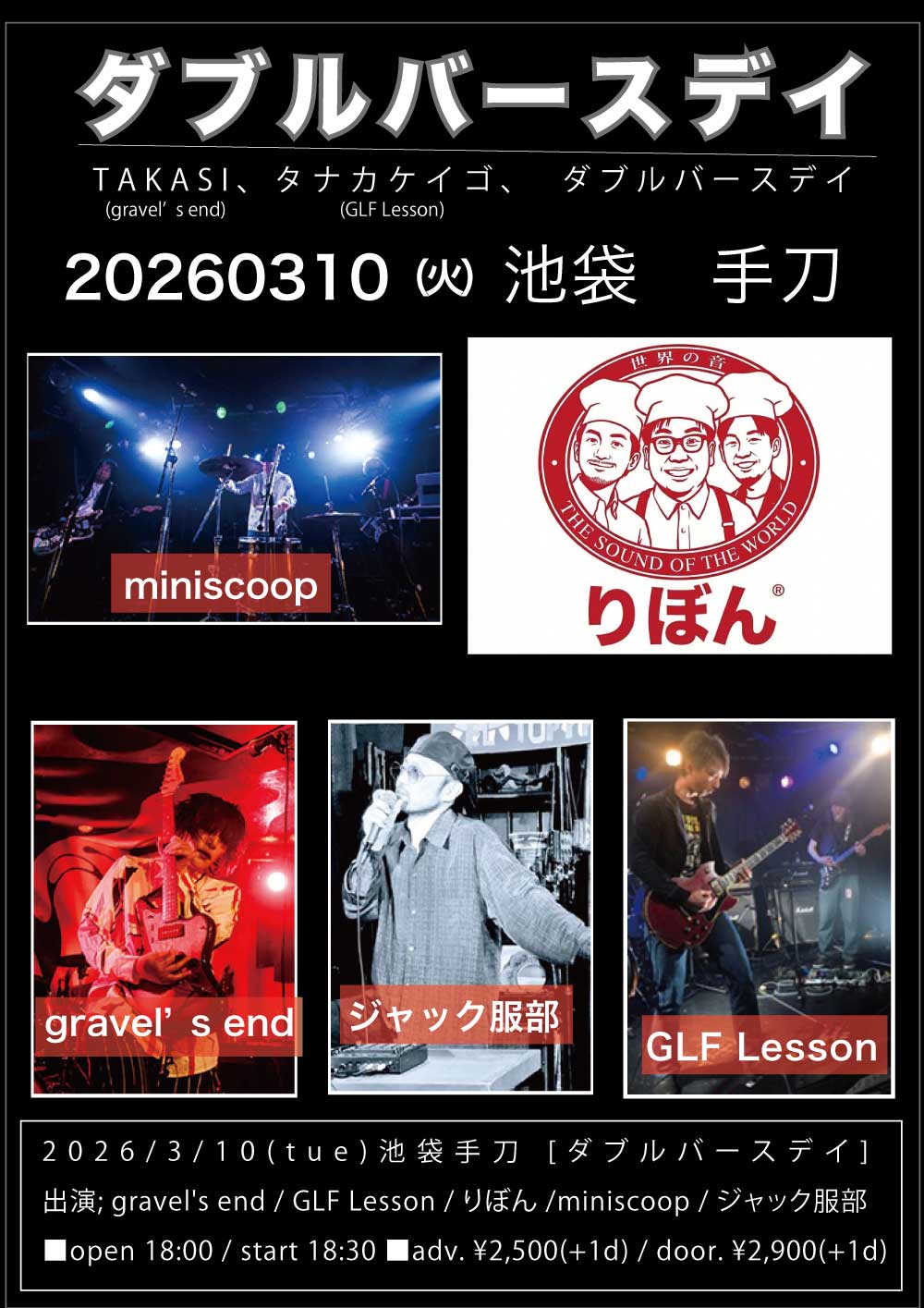 ■adv. ¥2,500(+1d) / door. ¥2,900(+1d)
